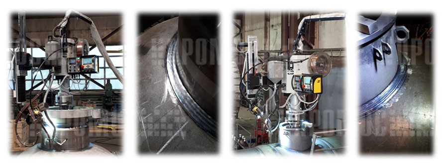 • Исполнение для сварки симметричных швов, расположенных на главных осях сосуда, с кулисно-кривошипным механизмом отработки седловидной траектории сварного шва (механическое исполнение) или для сварки симметричных и асимметричных швов с цифровыми программируемыми осями для перемещения сварочного инструмента по заданной траектории (цифровое исполнение); Цифровые источники питания дуги ESAB (Швеция) или EWM AG (Германия) с функцией стабилизации заданных параметров горения дуги (ток и напряжение), обеспечивающие стабильную геометрию формы валика; Пульт управления с сенсорным ЖК-дисплеем и дружелюбным интерфейсом для освоения; Предустановка параметров процесса сварки (скорость, ток, напряжение, направление вращения); Протоколирование процесса сварки по отдельно свариваемым деталям; Программная защита оборудования от распространённых ошибок операторов;
