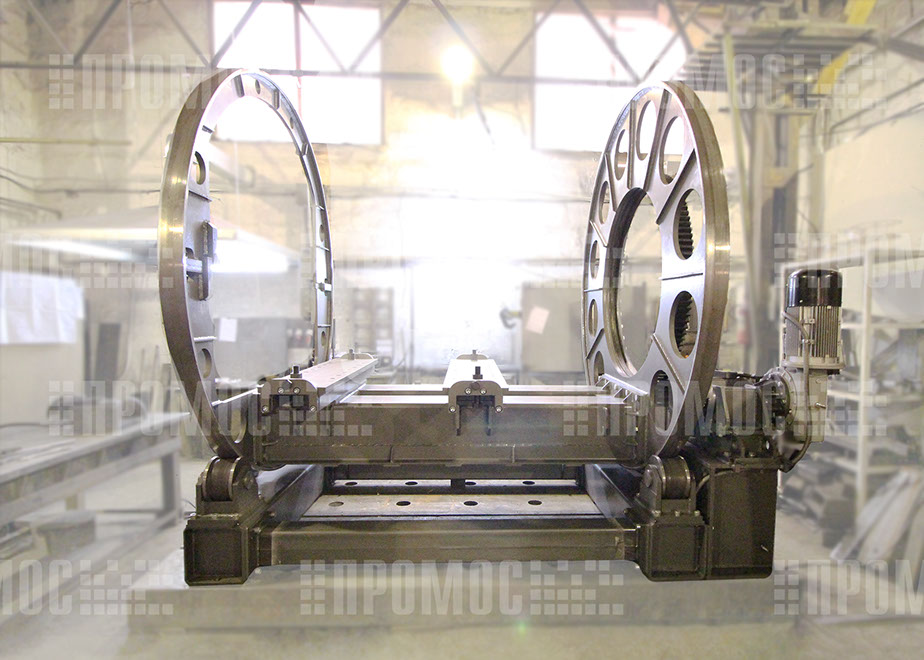 Позиционер специального исполнения предназначен для кантовки изделий в оптимальное положение для выполнения сварки. Позиционер представляет собой колонну, с L-образной консолью и поворачиваемым столом. Конструкция L-образной консоли и поворачиваемого стола имеет сквозное отверстие, что позволяет обеспечить доступ к свариваему изделию изнутри и со всех сторон.